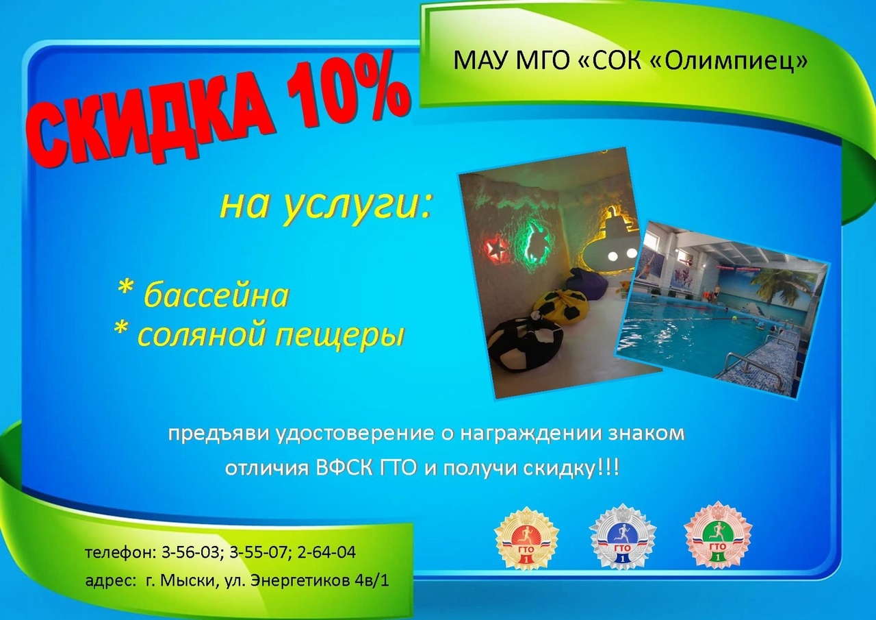 Обладатели знаков отличия ВФСК ГТО получают скидку на посещение