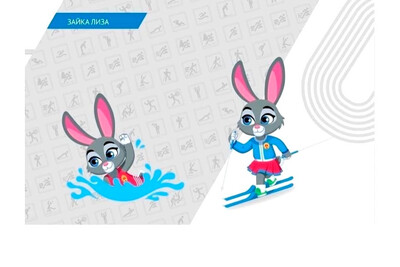 Зайка Лиза. Это маленький, но очень «спортивный» зверь, талисман олицетворяет прикладные навыки – прекрасно прыгает, а в природе даже умеет плавать. Лиза обладает присущей возрасту энергичностью, активностью, любознательностью, схватывает все на лету.