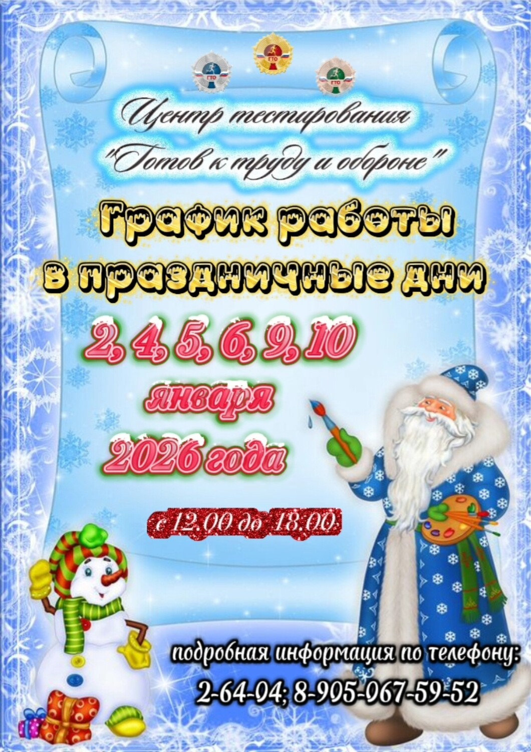 Приближаются долгожданные праздничные выходные, и мы приглашаем вас провести это время активно и с пользой для здоровья! Центр тестирования "Готов к труду и обороне" будет работать по следующему графику, чтобы вы могли без спешки посетить нас и выполнить нормативы комплекса ГТО.