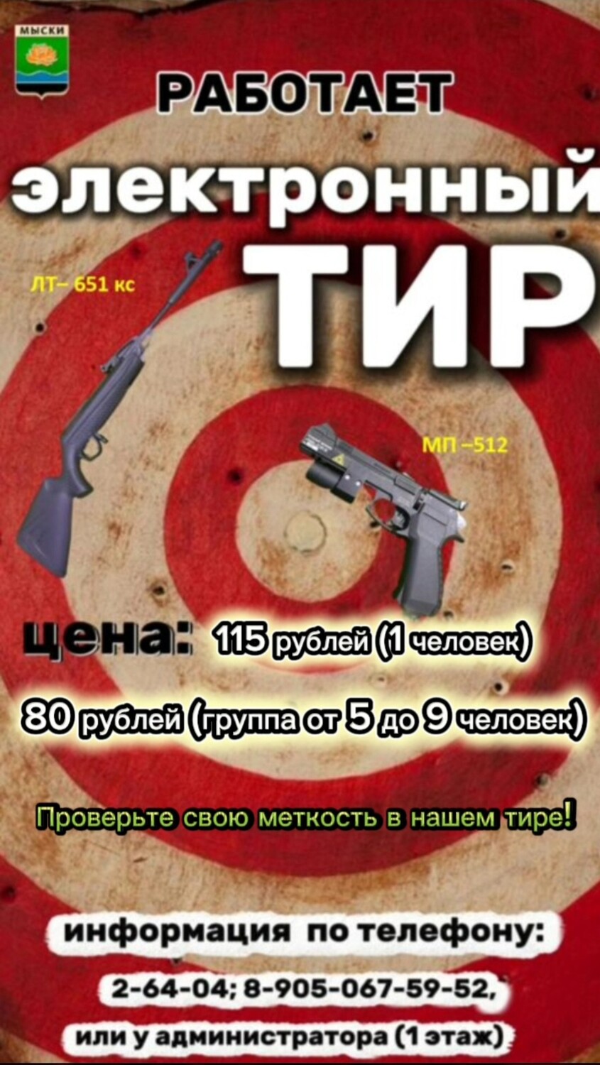 Не упустите шанс принять участие в наших соревнованиях по стрельбе из электронного оружия "Метко в цель!" Это прекрасная возможность провести время с пользой, получить новые впечатления и просто отлично повеселиться. Ждем вас сегодня! По адресу: г. Мыс ... Читать дальше »