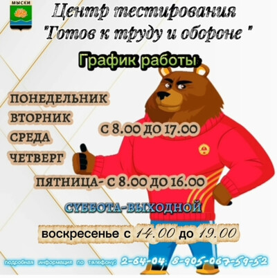 Центр тестирования « Готов к труду и обороне» Мысковского городского округа приглашает всех желающих на выполнение нормативов комплексов ГТО по предварительной записи : 2-64-04, 8-905-067-5952. Адрес: г. Мыски, ул. Энергетиков 4в/1 МАУ МГО СОК « Олимпиец», 1 этаж, кабинет № 105 E-mail: gto_myski@mail.ru |