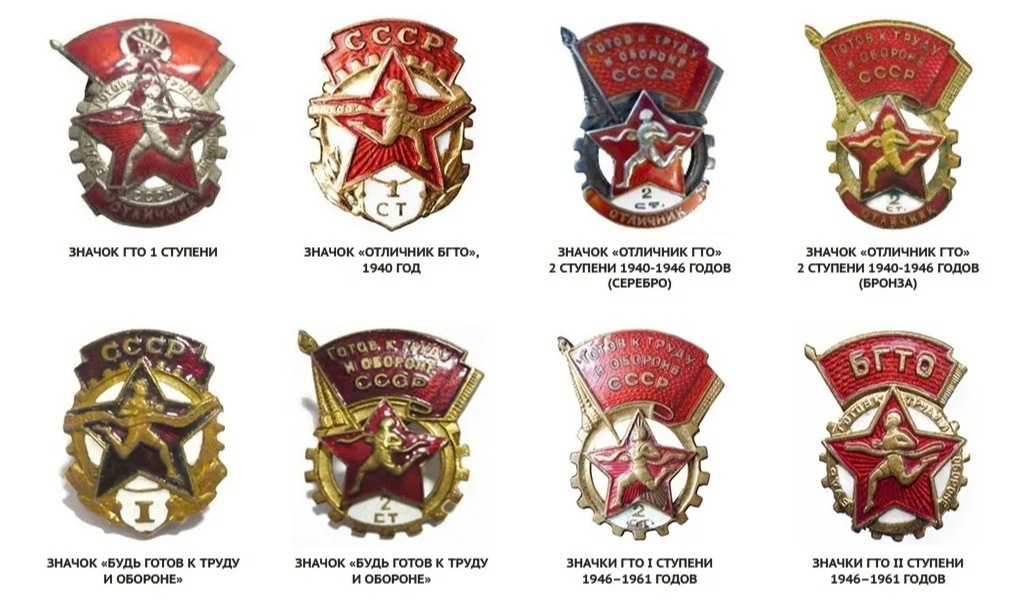 Значки ГТО (первые варианты) изготавливались из меди или латуни, и покрывались горячими эмалями (клуазон), в дальнейшем начался массовый выпуск значков из алюминия с покрытием жидкими (холодными) эмалями. Креплением для значков ГТО служил винт или безопасная булавка.